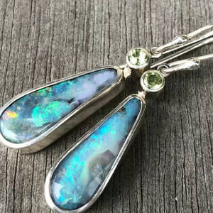 Bohemian Light Blue Green Faux Opal Drop Earrings