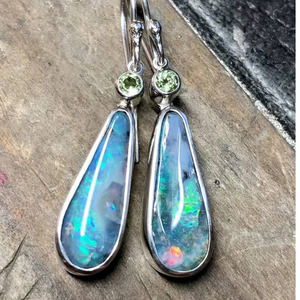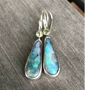 Beautiful dainty opal blue green faux opal drop earrings that are very lightweight