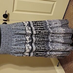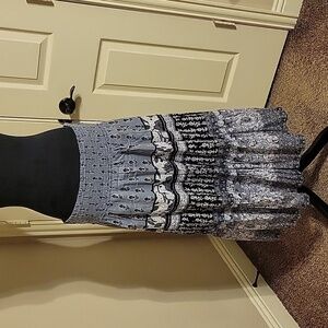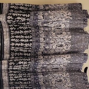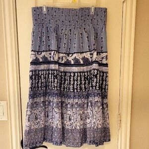 NWT! Embrace a bohemian vibe with this stylish blue and black skirt. Perfect for any occasion, this skirt offers a comfortable fit and a chic look. Scrunched waist enables comfort while providing a flattering look! waist does stretch. NEW, NEVER WORN AND IN EXCELLENT CONDITION!!!