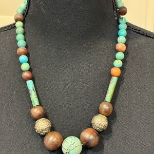 Bohemian Long Chunky Multi color Beaded Faux Turquoise Necklace