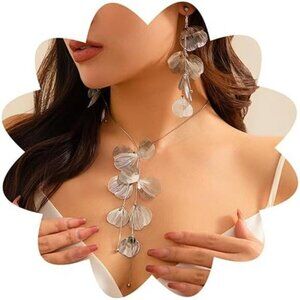 - Stunning silver-tone necklace and matching dangle earrings featuring delicate cascading leaf designs.