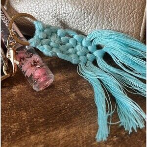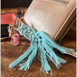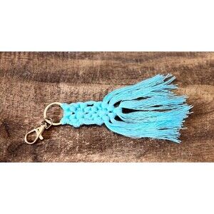 New in package! Adorn your keys or handbag with this unique and lovely braided macrame keychain! Alloy thread in teal with gold clasp. This makes a great gift as well!