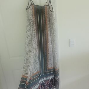 Stylish bohemian maxi dress featuring geometric patterns. Perfect for casual outings.