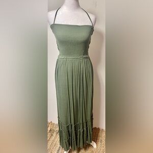Bohemian Minimalist Summer Backless Maxi Dress Olive Green Size Small