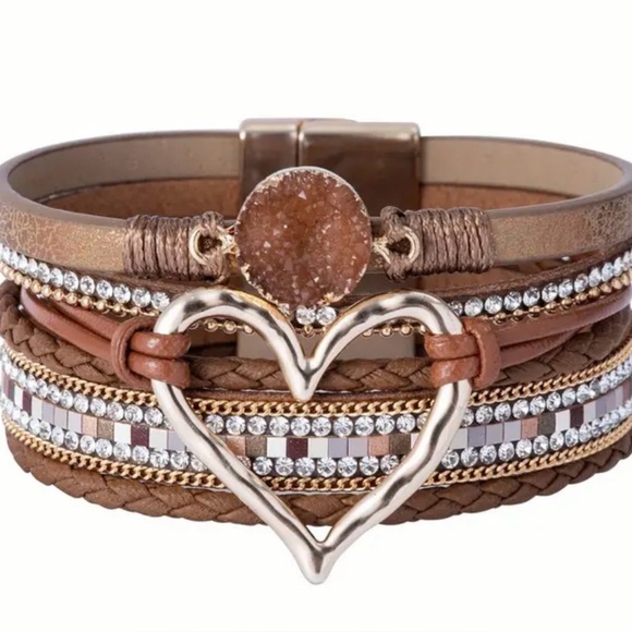 Bohemian Multi-layer Leather Fashion Bracelet Brown with magnetic clasp NEW