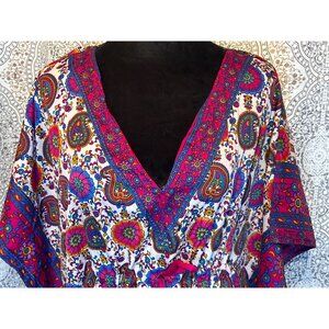 Crafted from lightweight fabric, this kaftan dress features a vibrant paisley and floral pattern. Its relaxed fit ensures comfort while the V-neck adds a touch of elegance. Perfect for both casual and semi-formal settings, this dress is versatile and stylish, making it a worthy addition to your wardrobe.