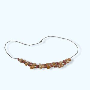 Bohemian Pearl & Coral Beaded Necklace Hippie Festival Beach