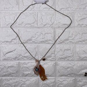 Bohemian Pendant Necklace Feather Charm Turquoise Accent & Silver Tone Chain