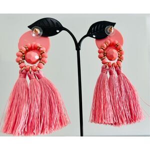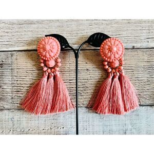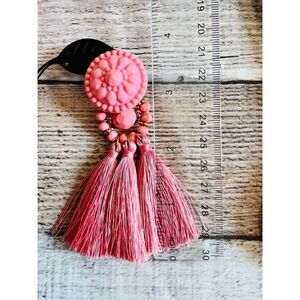 Brand New Pink Triple Bohemian Tassel Earrings Costume Jewelry. Super cute with a Shabby Chic vibe. Very lovely design. Approximate size 9/16 inches in diameter at top by 2 inch drop. Box pictured is just a box to protect earrings. Item in New condition. No known rips, tears, holes, stains or defects.