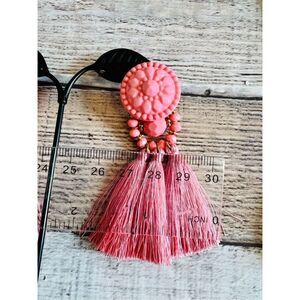 Bohemian Pink Triple Tassel Earrings Shabby Chic Jewelry NWT