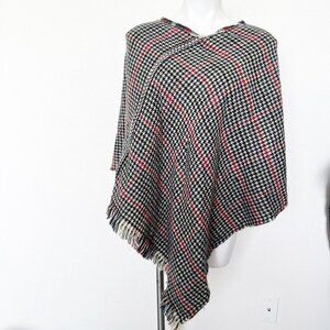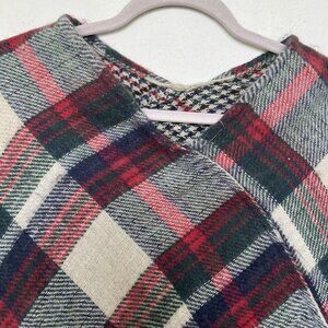 Bohemian Plaid Cape Poncho Sweater reversible tartan fringe Shawl One Size