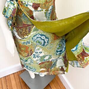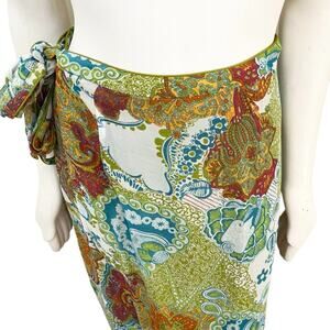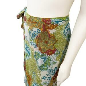 Bohemian Printed Silk Midi Wrap Skirt SZ 16