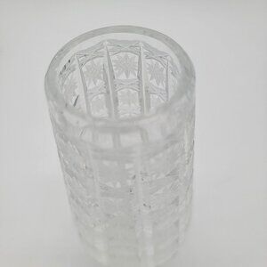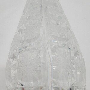 This vintage crystal vase features an intricate star pattern that adds elegance to any space. Made from high-quality cut glass, its clear finish enhances the beauty of floral arrangements, making it an eye-catching centerpiece.