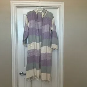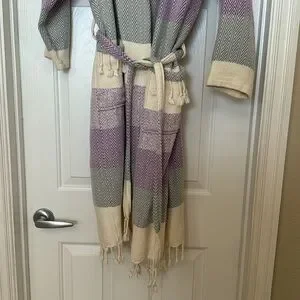 Never worn cute bohemian robe. Grey, purple and cream in color. Size Med