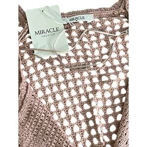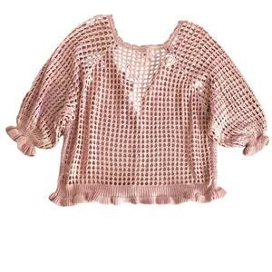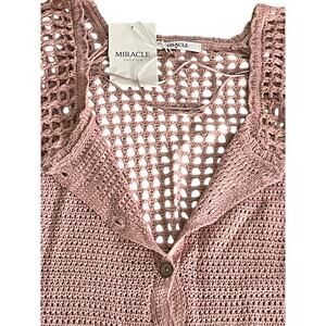 Bohemian Rose Pink Crochet Frill Cardigan Sweater Medium NEW