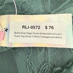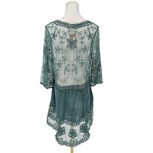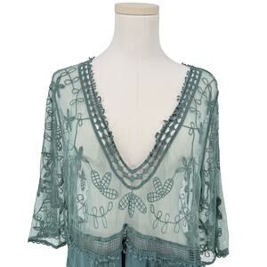 Bohemian Sage Green Embroidered Lace Tunic Top Deep V Neck Cottagecore Boho