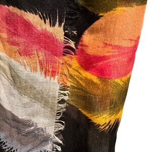This is a Bohemian feather print scarf wrap for women, in pink, peach, black and white. It's lightweight and measures 71x28", perfect for vacation or a cruise.