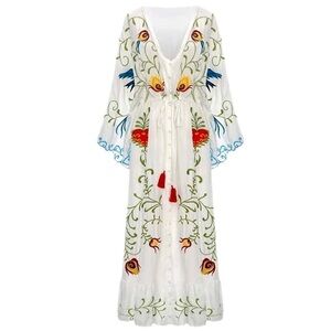 Bohemian Secret Garden Embroidered Cotton Blend Maternity Kimono Gown