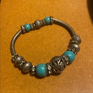 This bracelet showcases a harmonious blend of silver and blue beads, featuring intricate metalwork and vibrant blue stones. The alternating pattern of beads creates a balanced and eye-catching design, perfect for adding a touch of elegance to any ensemble.