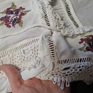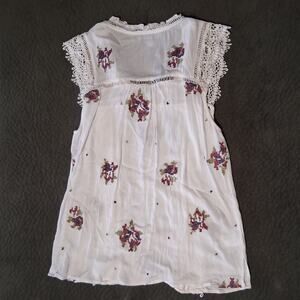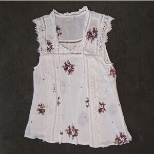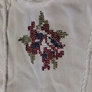 Bohemian Size M White Floral Cross Stitch Sleeveless Tank Top Lace Tassels Boho