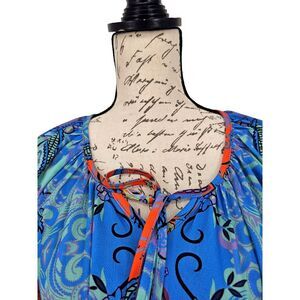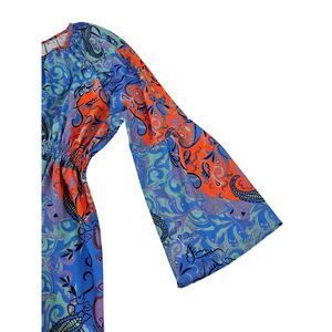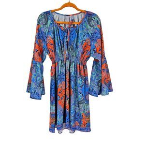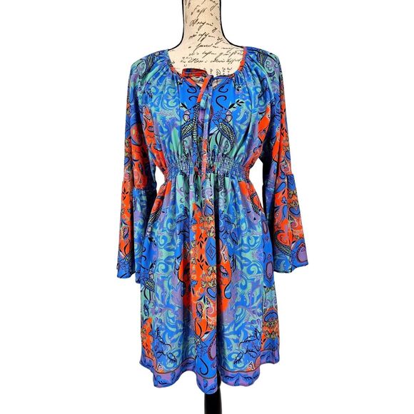 Bohemian Smocked Waist Bell Sleeves Dress Large
