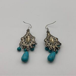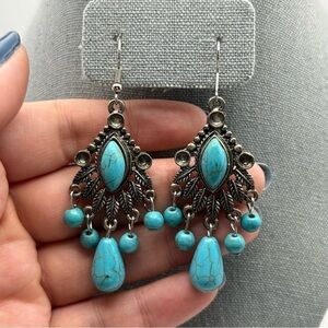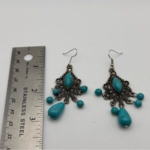 Bohemian Southwestern Turquoise Howlite Beaded Dangle Earring Silver Tone