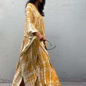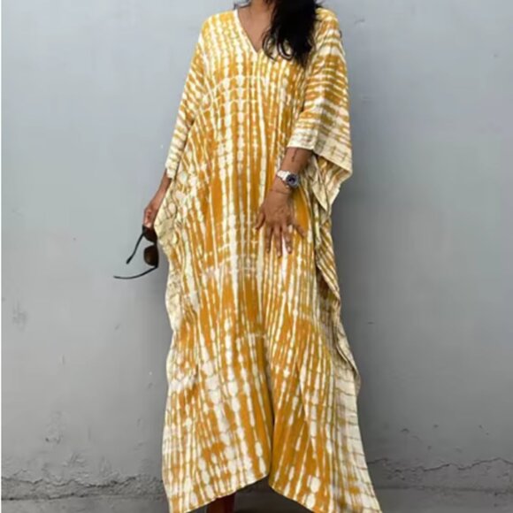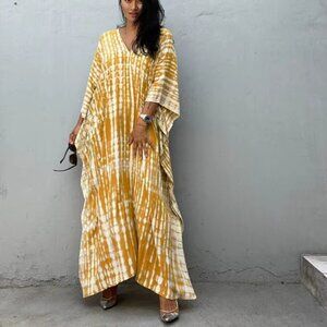 **QUALITY:** This woman's kaftan dress is made from a lightweight fabric that is comfortable to wear. It is an excellent choice for summer beach trips or relaxing at home.