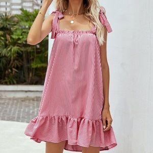 Bohemian Stripes Ruffle Mini Dress Blue Casual