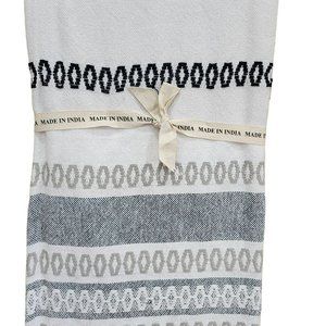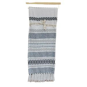 Bohemian Style Decorative Indian Cotton Grey Blue And Raw Throw Blanket With Texture