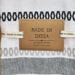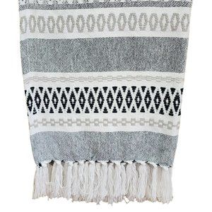 Bohemian Style Decorative Indian Cotton Grey Blue And Raw Throw Blanket With Texture