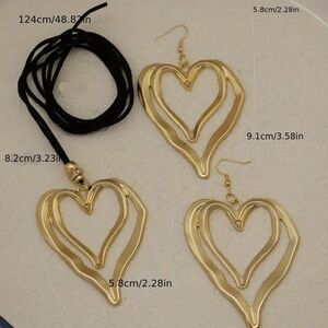 Bohemian Style Double Hollow Heart Earrings and Pendant Set