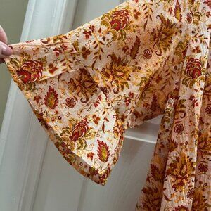 Cotton, Bohemian style dress. Length is just past the knees. Loose-fitting with lace hem. Never worn. Lost some weight and too big now.