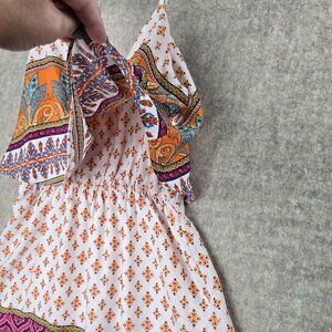 This bohemian sundress is a vibrant blend of colors and patterns, perfect for adding flair to your wardrobe. Its sleeveless design and elastic waist provide comfort and style, making it suitable for warm weather outings. The intricate patchwork pattern exemplifies a unique boho charm, showcasing artistry and attention to detail.