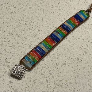Bohemian Style Square Stone Beaded Multicolored Braided Pu Leather bracelet