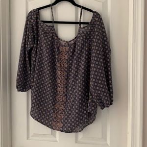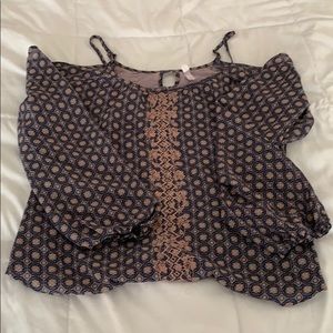 Fun, whimsical bohemian style top. Fascinating mixed navy and pale pink design that pairs with anything and any season.