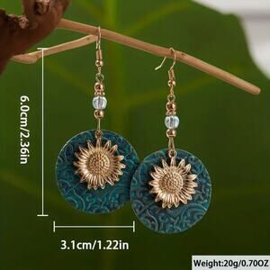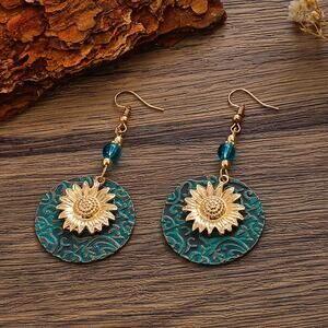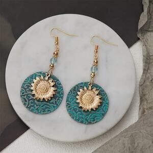 💣Bohemian Sunflower Vintage Design Drop Earrings Jewelry Gifts | Turquoise/Gold