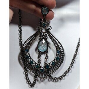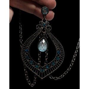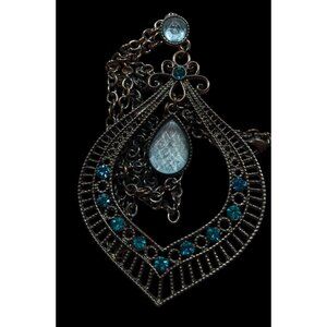 Bohemian Teardrop Blue Gemmed Silver Tone Pendant Necklace