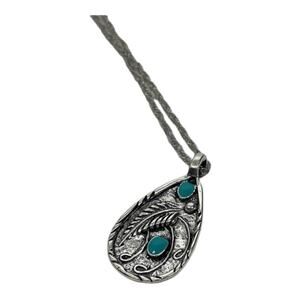 Enhance your jewelry collection with this beautiful Bohemian teardrop leaf turquoise silver feather chain pendant necklace.