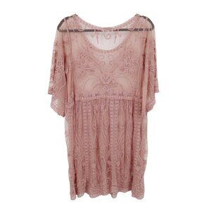 • Pink dress features intricate lace and mesh design with flutter sleeves