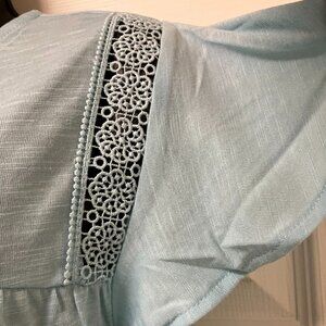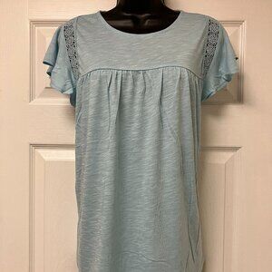 Bohemian Top Women's Boho Shirt Crochet Eyelet Flutter Short Sleeve Soft LARGE
