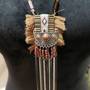 Bohemian Tribal Tassel Beaded Chain Pendant Necklace Punk with Lobster Clasp
