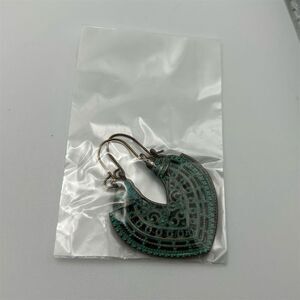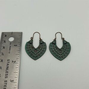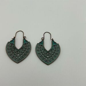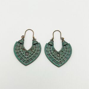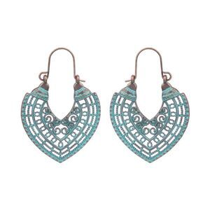 Bohemian Turquoise Blue & Bronze Tone Dangle Curved Hoop Earrings Hinged Back