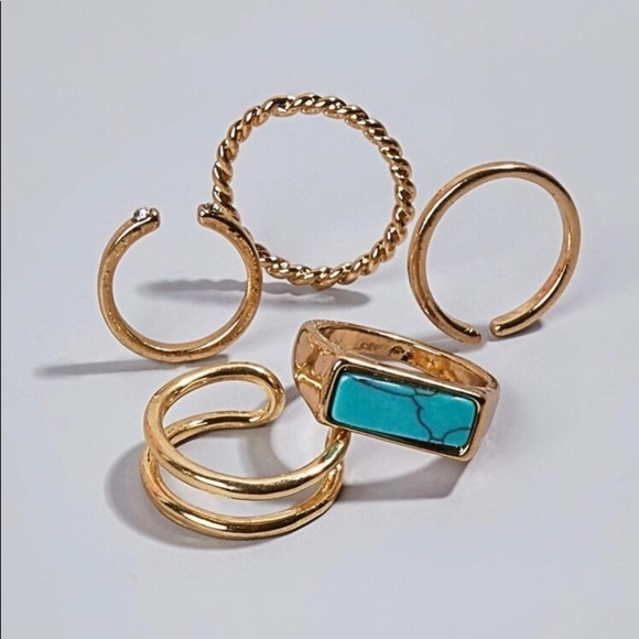 Turquoise Stone Gold Adjustable Ring Set