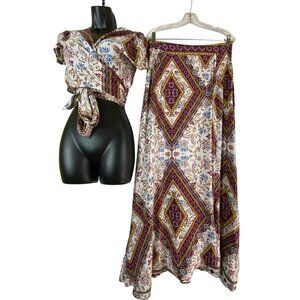 Bohemian Two-Piece Set Size Large Floral & Geometric Pattern Hippie Western Y2K