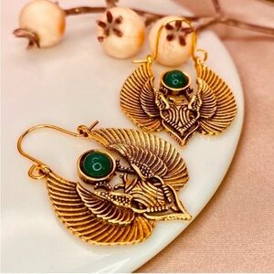 Bohemian Vintage Egyptian Sacred Wings & Moth Antique Gold Dangle Earrinngs