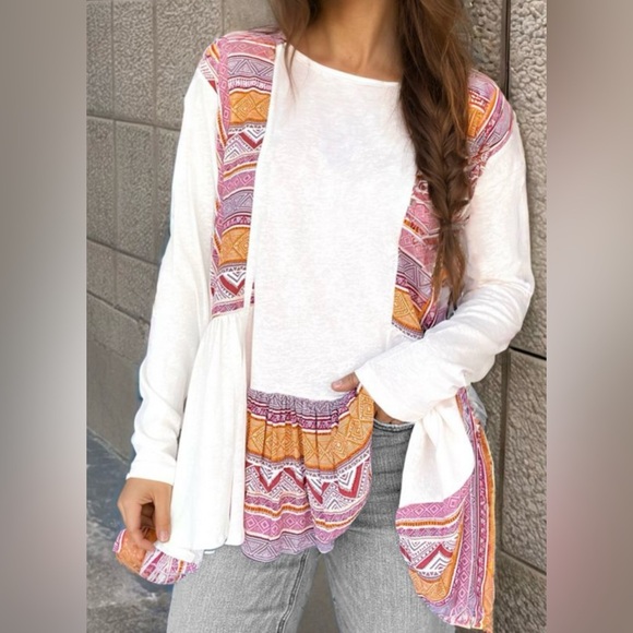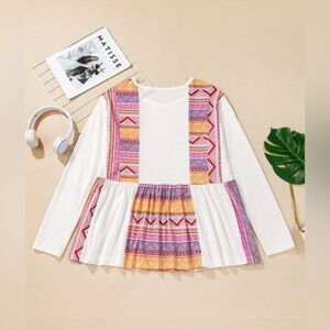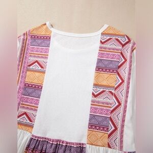 Bohemian White and Orange Tunic Top