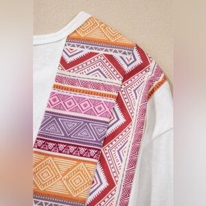 Embrace a bohemian vibe with this stylish tunic top. Featuring a blend of white and orange hues, it's perfect for a casual day out. Pair it with your favorite jeans for a chic look.