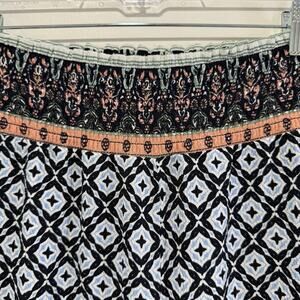 Cato Bohemian Wide Leg Ruffle Bell Bottom Pull On Pants Sz XL Pockets Printed Hippie