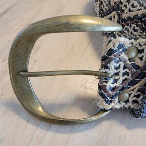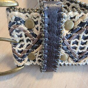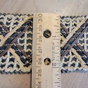 Bohemian Wide‎ Woven Belt 2.5" Sz L Hippie Jute Manmade And Suede BOHO