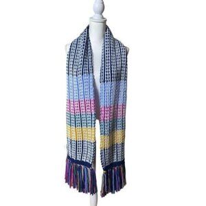 Bohemian Women's Striped Chunky Knit Scarf Fringe Cabincore Skiing Mulitcolor